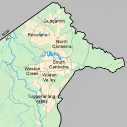 - Гангалин (англ. Gungahlin) заселён в 1990-х годах. В настоящее время 7 районов, планируется расширение.