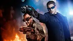 - Очки с единой линзой для обоих глаз вместо традиционных обычных темных очков (использовался в миссиях для Отряда Самоубийц)