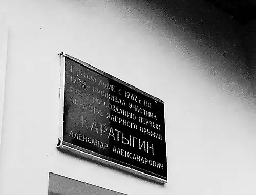 Алекса́ндр Алекса́ндрович Караты́гин (22 сентября 1914, Саратов — 10 февраля 1989, Обнинск, Калужская область) — начальник технического отдела радиохимического завода № 25 (объекта «Б») производственного объединения «Маяк», 15 марта 1953 год. Ценой риска для жизни ликвидировал самопроизвольно развившуюся цепную реакцию (СЦР) в ёмкости с плутониевым раствором.