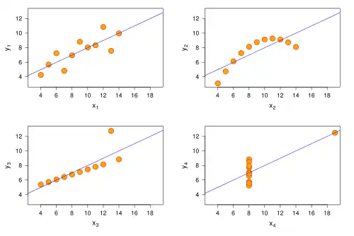 - F.J. Anscombe, "Graphs in Statistical Analysis", American Statistician, 27 (February 1973), 17-21.