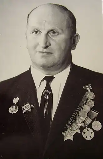 - ↑ Информация из учётной карточки награждённого в электронном банке документов «Подвиг народа».