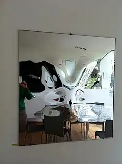 В работах Ольги Киселёвой «Рай» (Paradise, 2007) и «Зеркало-тролль» (Troll Mirror, 2008) фокус также направлен на зрителя. Проходя через заложенные художником фильтры, он должен вступить в диалог с самим собой. Активным медиа здесь выступает зеркало, в первом случае фрагментарно разбросанное по поверхности стены, а во втором представленное зрителю в виде уникального артефакта. Понятие «рая» как чего-то, существующего после жизни, присутствует во всех священных писаниях, но также и в «Капитале» Маркса[18]. Художница облекает это понятие в форму необычного текстуально-зеркального коллажа на стене. Зеркала с крупно выгнутыми на них обозначениями мировых валют постоянно напоминают человеку о консюмеризации общества, в котором он живёт. Подобное включение зеркала в структуру интерактивной инсталляции нередко для интерактивного искусства 2000-х. В частности, для работы под названием «Аудитория» (Audience, 2008) интернациональной группы медиахудожников «Рэндом интернэшнл» (Random Int.), в которой расставленные рядом небольшие зеркала направляются на каждого из зрителей в отдельности при помощи специальных механизмов. Киселёва же при работе с зеркалами не использует возможности машинерии, подразумевая, что этот медиум как ничто другое знаком и близок человеку, для которого он и существует.