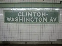 Станция была открыта 1 июля 1937 года. Представлена двумя боковыми платформами и двумя путями между ними. Стены покрыты белой плиткой со светло-зелёной декоративной линией. Также имеются мозаики с полным названием станции "CLINTON - WASHINGTON AV". Под декоративной линией есть маленькие чёрные мозаики с половиной названия станции. Мозаики, на которых написано "CLINTON", чередуются с мозаиками "WASHINGTON". Обе мозаики выполнены белыми буквами на чёрном фоне. Балочные колонны станции окрашены в жёлтый цвет и на них также имеется название станции в виде чёрных табличек.