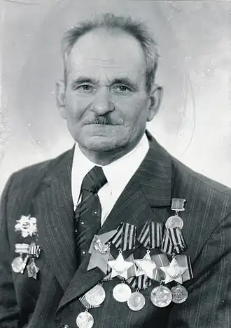 - ↑ Информация из учётной карточки награждённого в электронном банке документов «Подвиг народа».