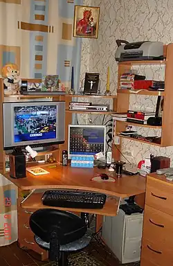 Компьютерный стол — стол, созданный специально для установки компьютера. На этом столе, как правило, предусматривается место (чаще всего — тумба) для системного блока, полочка для установки монитора, выдвижная полочка для клавиатуры и мыши чуть ниже рабочей поверхности и другие, необходимые для установки периферийных устройств предметы, созданные для удобства пользователя ПК, такие как полочки для книг, стойки для компакт-дисков и др. Компьютерные столы выполняются прямыми и угловыми, материалом для их изготовления служат дерево, пластик, стекло, металл.
