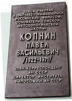 Па́вел Васи́льевич Копни́н (27 января 1922[1], Гжель, Московская губерния — 27 июня 1971[1], Москва[1]) — советский философ , гносеолог и логик, доктор философских наук (1955), профессор (1958), член-корреспондент АН СССР (1970), академик АН УССР (1967). Внёс заметный вклад в формирование киевской гносеологической школы, за что также иногда причисляется к украинским философам[3].