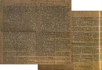 46. Корниловский мятеж. 25-31 августа 1917. Радиограмма А. Ф. Керенского с обращением к народу. 27 августа 1917. Дата обращения: 21 июня 2008. Архивировано из оригинала 23 октября 2008 года.