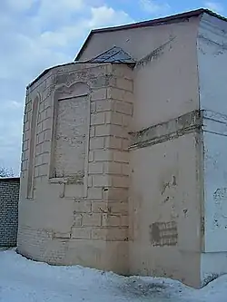 Первоначальный вид здания включал в себя две башни с двумя дубовыми крестами, покрытыми белой жестью, а под ними — латунные шары, окрашенные масляной краской. Посреди фронтона стоял чугунный крест весом 12 пудов. Бабинец был отделен от основного объёма каменной стеной с 4 дверями. Пресвитерия была отделена решеткой. Длина постройки была 12, ширина — 7, высота — 10 сажен[1].