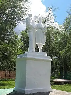 - Памятник «Счастливой семье» на развилке с Южной улицей[10]