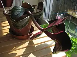 Многолетнее[4] суккулентное растение высотой от 20 до 35 см[1], которое может быть как полегающим, так и прямостоячим. Корневая система мочковатая. Побеги имеют диаметр 5–10 мм. Листья широкоэллиптической формы, тёмно-зеленые, сидячие, размером 4–6,5 x 2,5–4 см, с темно-пурпурной нижней поверхностью. Края листьев цельные или почти зубчатые, слегка закрученные, с острым или заостренным кончиком[5].