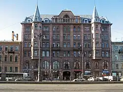 - Доходный дом Ф. Г. Стааля (ремонт). Улица Маяковского, 41 — Улица Рылеева, 6 (1904)[18];