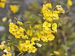 Прямостоячие стебли несут небольшое количество жёлтых цветков, собранных в соцветия. Кисть 5-50-цветковая, в начале цветения компактная, позже довольно рыхлая, постепенно удлиняющаяся. Чашелистики продолговато-яйцевидные, голые или ближе к концу опушённые очень мелкими волосками, бледные. Лепестки продолговато-обратно-яйцевидные, по краю с довольно глубокой вырезкой, желтые, 4,5—6 мм длиной[3].