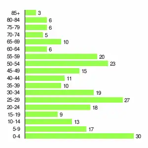 - ↑ Национален статистически институт. Население по области, общини, населени места и възраст към 01.02.2011 г. (болг.). Дата обращения: 18 марта 2012. Архивировано 14 августа 2013 года.