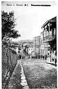 Одной из главных и старейших улиц города, выполнявшей одновременно роль «длинного центра», была улица Ашагы базар, которая вплоть до первой трети XIX века являлась композиционно-планировочной основой градостроительной структуры Шуши. В отличие от остальных улиц, Ашагы базар была единственной чётко спланированной торговой магистралью, на всём своём протяжении по обе стороны застроенной торговыми рядами. Здесь также располагались караван-сараи и бани, в том числе баня Угурлу-бека[47]. Другая торговая магистраль — Раста базар — проходила через площадь Мейдан и караван-сарай Гаджи Амираслана и продолжалась на юг, где именовалась Шейтан базар[48].