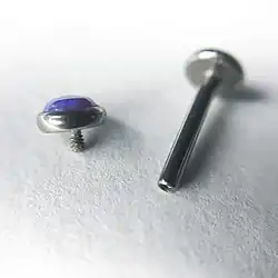 Лабрет или лабретка[1] (англ. от labret, от лат. labrum — «губа») — украшение для пирсинга, состоящее из штанги, не откручивающейся шляпки и накрутки различных форм. Иногда используются безрезьбовые лабреты (Push Pop). Стандартные размеры: толщина стержня 1 мм, 1.2 мм, 1.9 мм; длина стержня от 4 мм до 20 мм (иногда лабрет с толщиной 1 и 1.2 мм называют микролабретом). Подходит для пирсинга губ, носа и ушей.