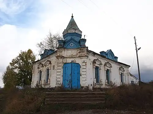 Над входным тамбуром возвышается декорированная килевидными кокошниками восьмигранная башенка с восьмигранным шатром, увенчанным небольшим шаром со шпилем.
