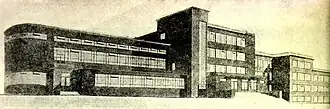 К строительству комплекса приступили в 1930 году. В процессе работы первоначальный проект видоизменили, упростив один из объёмов. К осени 1932 года Учебный корпус был готов на 98 %.
