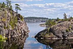 Шхерный район тянется от острова Кильпола, возле населённого пункта Берёзово на западе, до города Питкяранта на востоке. Шхеры Ладожского озера представляют собой комплекс, состоящий из 650 скалистых островов и обрывистых скал, а также изрезанного временем и стихией побережья самого озера.[5]