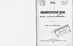 - Encausse (Gérard, alias Papus), «La Cabbale, tradition secrète de l’occident», Paris/St Jean de Braye, Dangles, 19(?)
