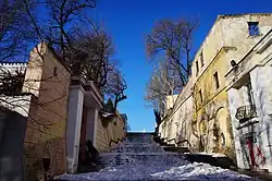 На значительном участке представляет собой лестницу (вместе с подпорными стенками построенную в середине XIX века, архитекторы Платон Круг, Каэтано Даллаква)[1]