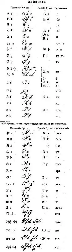 Старая латышская орфография была основана на немецкой орфографии. В печати обычно использовался готический шрифт.