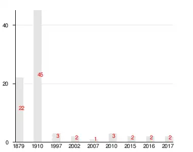 | 1997[17] | 2002[18] | 2007[19] | 2010[20] | 2017[1] |