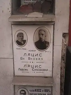 Плита с именем Яна Лациса в колумбарии на Новодевичьем кладбище Москвы.