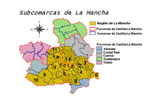 - Манчуэла-Конкенсе входит частично в состав Ла-Манчуэла (3 на карте) и Ла-Манча-Альбасетания (1d на карте)