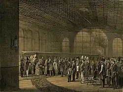Архитектор Тон планировал расположить симметрично относительно главного здания вокзала два флигеля для таможни и квартир служащих, но реализовали только первый из них. Строительство комплекса завершилось к 1853 году, он состоял из трёхэтажного главного корпуса, одноэтажного пакгауза и двухэтажного крыла с квартирами служащих[26][7].