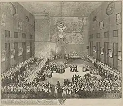 После смерти Франца Лефорта его вдове предоставили в распоряжение прежнюю усадьбу, находившуюся в южной части Немецкой слободы. Новопостроенный дом князя перешёл в ведомство Посольского приказа и использовался для приёма иностранных посланников и проведения торжественных мероприятий. В этот период начались первые выходы женщин «в свет», ставшие обязательной частью петровских ассамблей. В 1702-м в стенах имения проходила свадьба царского шута Феофилакта Шанского. В этом же году в главном зале строения обустроили потешный театр, пока для труппы возводилось собственное здание. По мнению историка Ивана Голикова, в усадьбе также проводили военные советы[3][14][15].