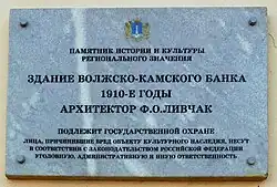 Мемориальная доска на здании Волжско-Камского банка (Симбирск).