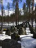На территории под открытым небом расположены памятники Зимней войны: укрепления, окопы и другие огневые позиции финляндских войск, а также противотанковая линия обороны протяжённостью 1200 км, идущая с юга на север вдоль границы с Российской Федерацией до Северного Ледовитого Океана и сложенная из вертикально ориентированных булыжников.[22]