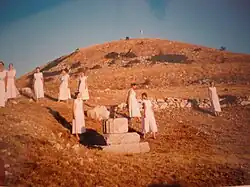 Зольно-земляной жертвенник был создан на плоской круглой площадке на вершине диаметром около 50 метров[41].