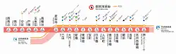 На картах и вывесках линия отмечена розовым цветом. Станции помечены значком