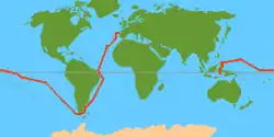 При переходе через Атлантический океан от эскадры оторвались флагманское судно «Санта-Мария-де-ля-Виктория» (под командованием Лоайса) и «Сан-Габриель» (под командованием Родриго де Акунья). Командование пятью оставшимися судами принял на себя Элькано. 12 января этот отряд вошел в устье реки Санта Крус, где Элькано надеялся дождаться адмирала. Но офицеры эскадры хотели войти в Магелланов пролив как можно быстрее, поэтому уже 14 января эскадра отправилась в путь, оставив пинассу Сантьяго дожидаться Лоайсу.