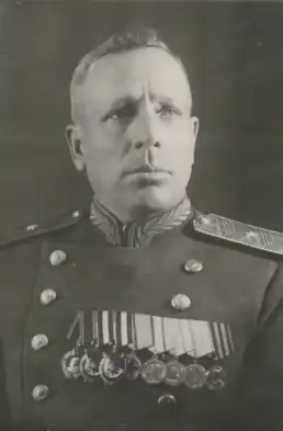 Находился на излечении в госпитале. Начальник штаба 15-го кавалерийского корпуса с 18.05.1943 по 25.02.1946, генерал-майор (13.09.1944)[1]. Выполнял миссию в оккупированном СССР и Великобританией Иране. В конце войны находился в Германии. Вышел в запас 30 декабря 1952 года[1].