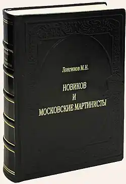 - Лонгинов, Михаил Николаевич. Новиков и московские мартинисты. — Москва: тип. Грачёва и К°, 1867.