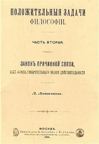 - 1 2 Лопатин Л. М. Положительные задачи философии. Часть II. Закон причинной связи, как основа умозрительного знания действительности. — М.: Типография Э. Месснера и Ю. Романа, 1891. — 392 с.