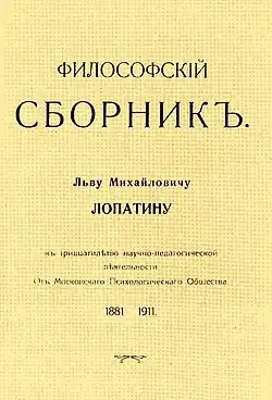 - ↑ Философский сборник Льву Михайловичу Лопатину к тридцатилетию научно-педагогической деятельности. От Московского Психологического общества 1881—1911. — М.: Типо-литография И. Н. Кушнеров и Ко, 1912. — 334 с.