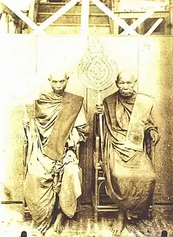 Луанг Пхо Чем разорвал несколько монашеских роб на повязки-талисманы, на каждой из которых он написал одну из букв тайского алфавита[1], и раздал их своим сподвижникам.