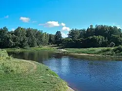 Русло песчаное, на порожистых участках галечно-валунное, встречаются известняковые плиты[7]. Пойма прерывистая, местами изрезанная старицами и заливами.