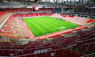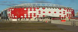Домашняя арена клуба «Спартак» (Москва). Построен на территории бывшего Тушинского аэродрома. Принимал матчи Кубка конфедераций 2017 года и чемпионата мира 2018 года[9][10][11], во время этих турниров согласно требованиям ФИФА и УЕФА по именованию стадионов носил название «Спарта́к»[2]. Вмещает 45 496 зрителей[7], является вторым по вместимости футбольным стадионом в Москве после «Лужников» и четвёртым по этому показателю в России. Открыт 5 сентября 2014 года матчем «Спартака» с сербской «Црвеной звездой» (1:1)[5]. Лучший российский стадион по версии британского сайта money.co.uk, а также делит 11—15 места в рейтинге среди всех европейских стадионов[12].