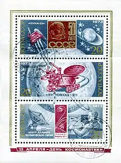 «Луна-21» — советская автоматическая межпланетная станция (АМС) для изучения Луны и космического пространства. Доставила на поверхность Луны автоматический самоходный аппарат «Луноход-2». На посадочной ступени «Луны-21», как и на «Луноходе-2» находились Государственный флаг СССР, вымпелы с барельефом В. И. Ленина, Государственным гербом СССР и текстом «50 лет СССР»[1].