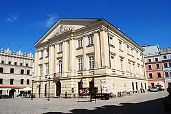 В 1703 годуАвгуст II дарует городу привилегии, уравнивающие его в правах с Краковом. После северных войн наступает период возобновления строительства, расстраиваются в основном купеческие и церковные слободы. Формируется образ нынешнего Краковского предместья.
