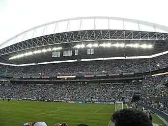 В 1997 году возможность появления команды MLS в городе склонило общественное мнение к строительству нового стадиона[93], так как ещё в 1996 году Сиэтл рассматривался как один из десяти претендентов на получение нового клуба, однако отсутствие современного футбольного стадиона негативно сказалось на его шансах[94]. В 2007 году было объявлено, что в результате расширения MLS в городе появится новая команда. Свой дебютный матч в регулярном чемпионате ФК «Саундерс» сыграли 19 марта 2009 года, в котором команда со счётом 3:0 одержала свою первую победу[95].