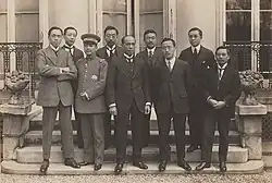 23 декабря 1918 года Лян Цичао вместе с учениками отправился в Европу в составе китайской делегации на Парижскую мирную конференцию в статусе советника и частного наблюдателя. В общей сложности его пребывание в Великобритании, Франции, Нидерландах, Бельгии, Германии, Швейцарии и Италии продлилось 434 дня: он вернулся в Шанхай 4 марта 1920 года. Всего он посетил 45 городов в пяти странах Азии и семи государствах Европы[50]. Лян Цичао публично объявил, что его целью было как исследование последствий мировой войны для стран Запада, так и, по возможности, изменение отношения европейского общественного мнения к событиям в Китае. С собой мыслитель взял шестерых учеников, которые получили образование за рубежом, владели языками и специализировались в какой-либо области знания профессионально. Бай Лиминь резюмировала это в таблице[50]: