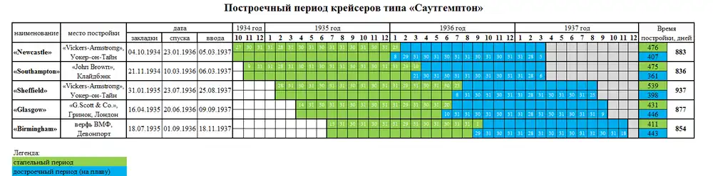 | Название | Дата закладки киля | Дата спуска на воду | Дата вступления в строй |
