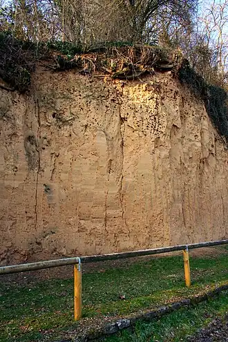 Лёсс (нем. Löß или Löss — рыхлый, осыпающийся) — осадочная горная порода, алевролит слабой крепости, обычно песчаный, глинистый и сильно известковый, с высокой пористостью. Характерным свойством лёсса является просадочность при природной нагрузке[1]. Залегает в виде покрова от нескольких метров до 50—100 м — на водоразделах, склонах и древних террасах долин.