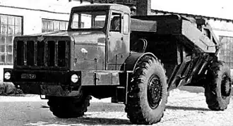 В это же время в СССР началась разработка аналогичных машин. Разработка была поручена СКБ-1 Минского автомобильного завода. Первоочередным заказчиком подобной техники выступало Министерство обороны. Ему нужны были мобильные установщики ракет, самоходные заправщики для этих ракет, а также строительные машины. Первый опытный образец был построен в 1956 году. Он имел одноместную кабину, дизель ЯАЗ-М206 мощностью в 165 л. с.