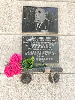 Михаи́л Андре́евич Македо́нский (3 февраля 1904, Старый Крым, Таврическая губерния — 26 апреля 1971, Щебетовка, Крымская область) — советский государственный и политический деятель, участник Великой Отечественной войны, партизан Крыма с октября 1941 года, к 1944 году командир Южного соединения партизан Крыма. Депортирован из Крыма в 1944 году как грек. После войны винодел и виноградарь, директор совхоза «Коктебель», Герой Социалистического Труда.